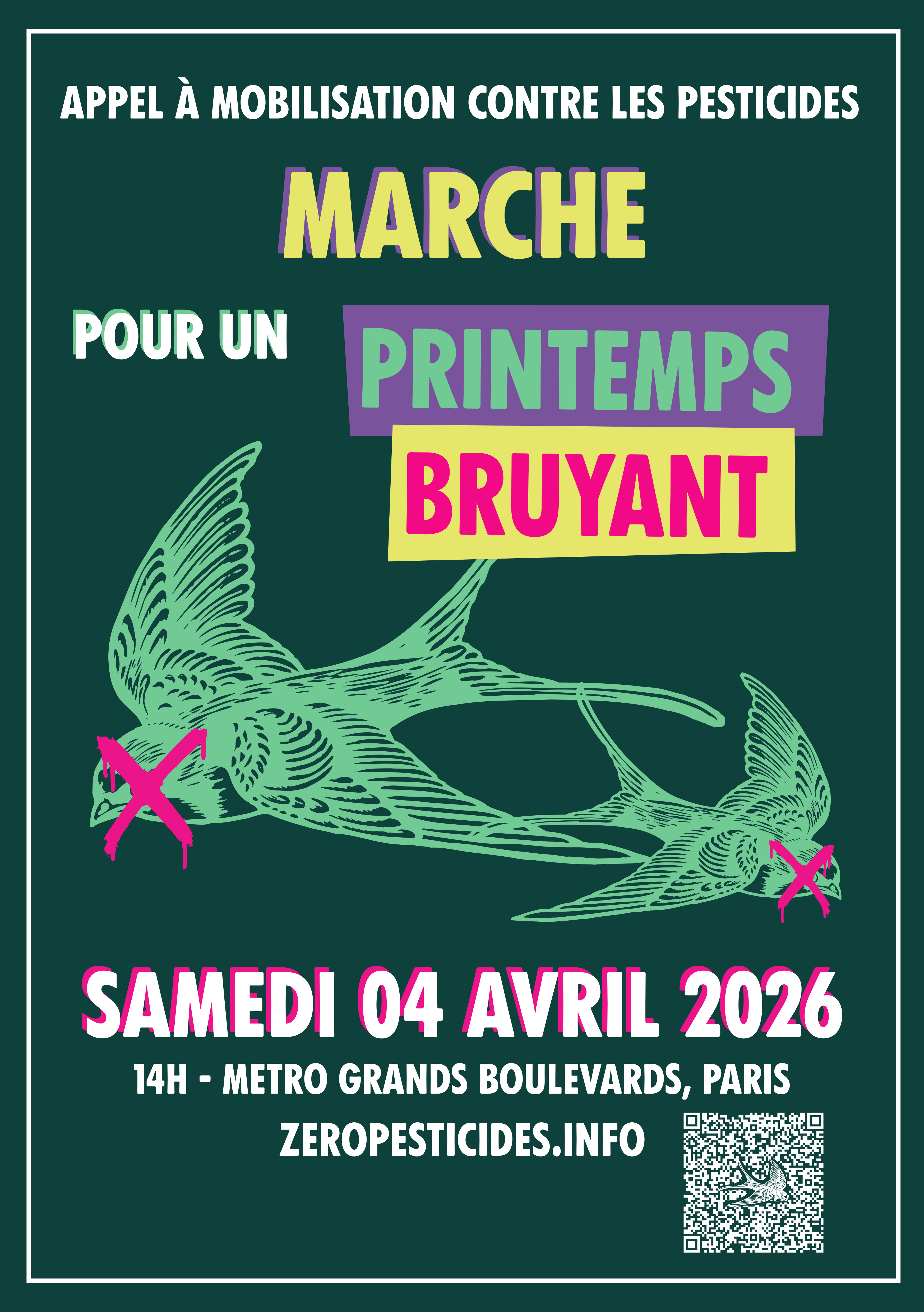 RDV métro Grands Boulevards, à 14h00, pour la Marche Printemps Bruyant.