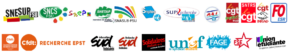 Nos organisations appellent d’ores et déjà à manifester massivement le 12 mai, jour de reconvocation du CNESER, à Paris pour converger vers le ministère, et en région devant les établissements et les rectorats, pour :