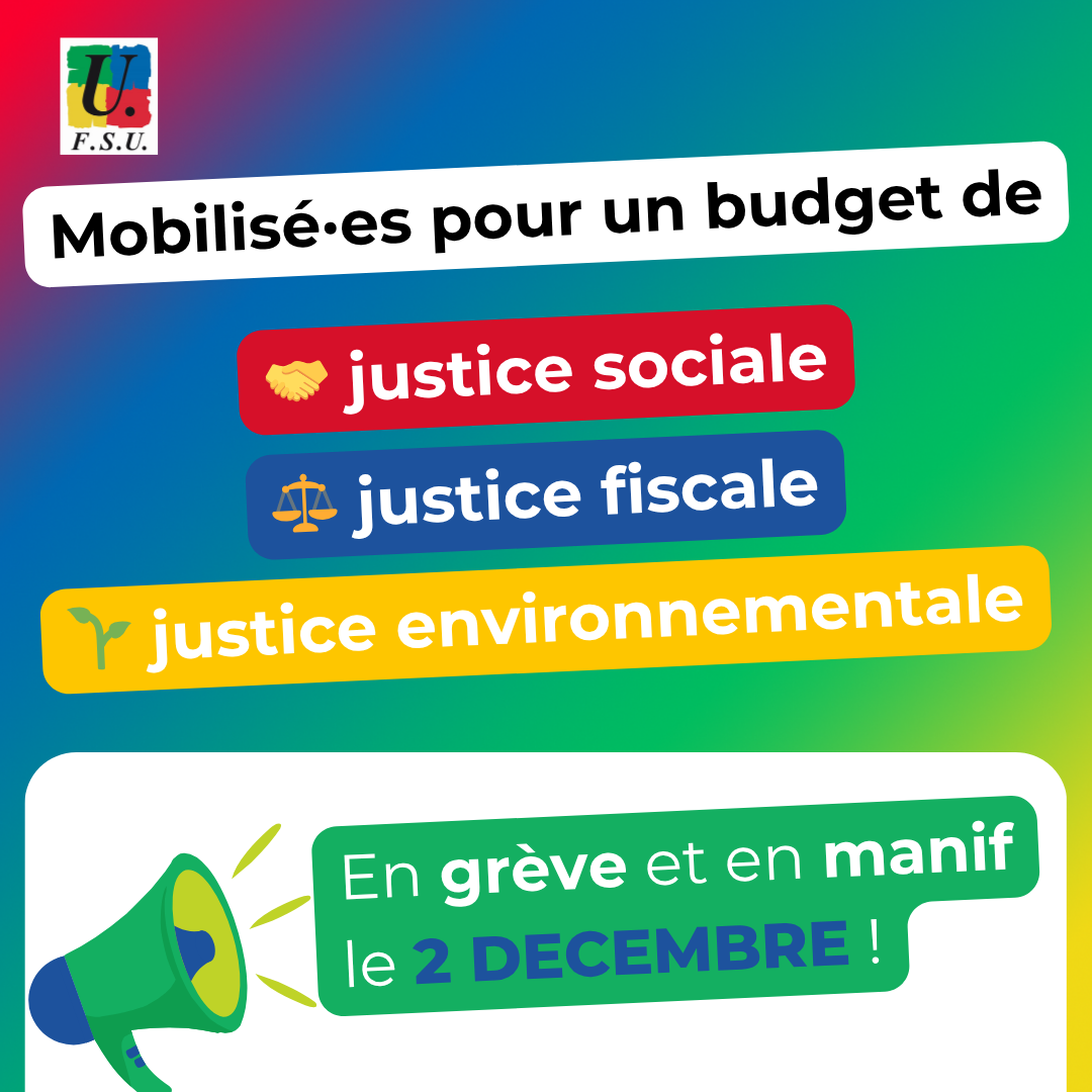 Partout, dans les professions, sur les lieux de travail et dans les territoires organisons les intersyndicales les plus larges possibles. Associations, acteur·rices de la culture, du logement, de l’action sociale, collectivités territoriales, jeunes, organisations environnementales, féministes… nous appelons toutes celles et ceux qui sont frontalement attaqué.es par ce budget à nous rejoindre pour construire la mobilisation du 2 décembre.
